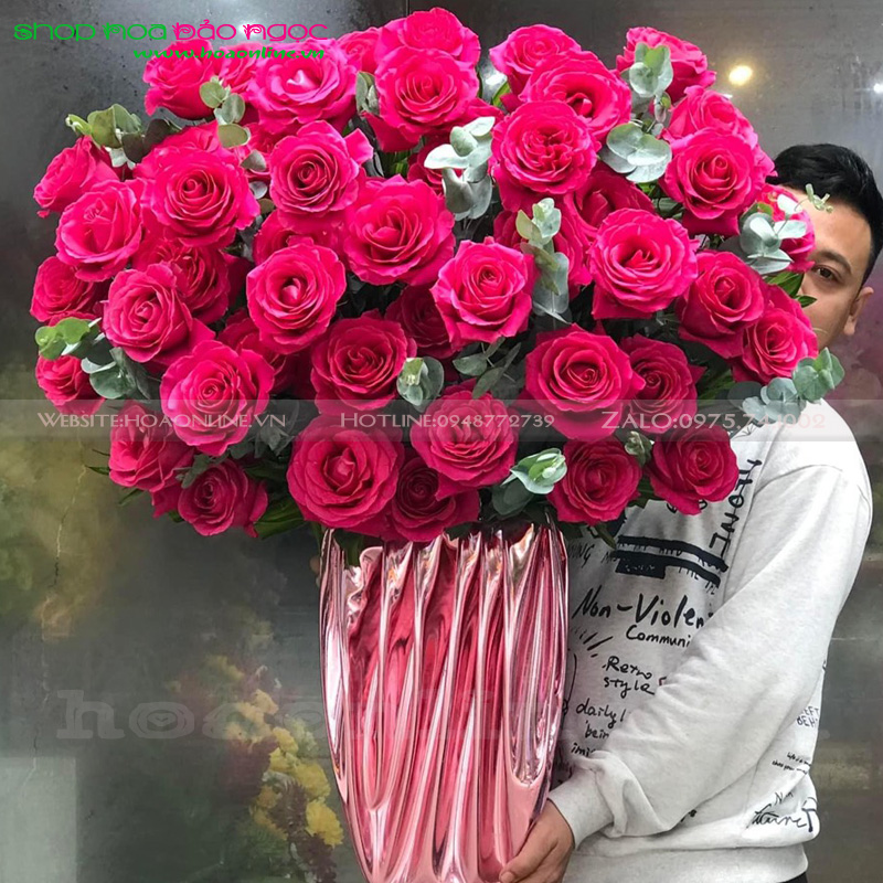 Bình hoa hồng đẹp BN-BI101 được thiết kế và thực hiện bởi Hoa Lan Bảo Ngọc: