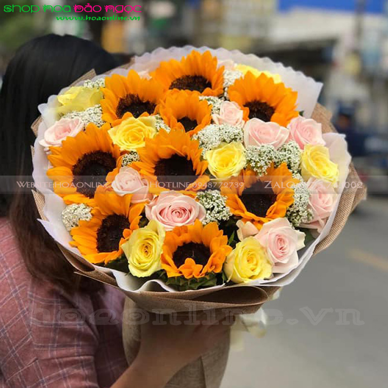 - Hoa Hướng Dương tươi và hoa phụ vừa đủ.