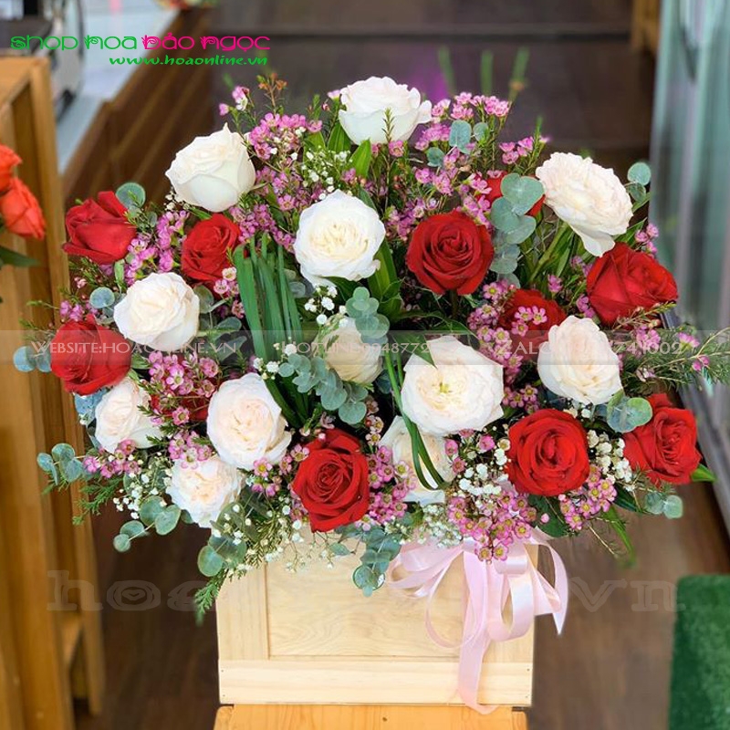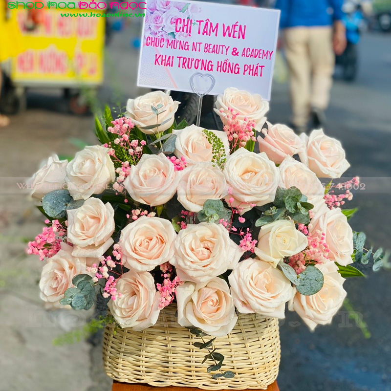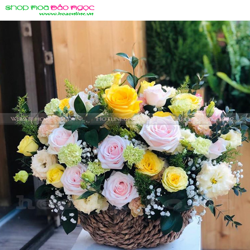 Giỏ hoa ngày lễ phụ nữ được thiết kế và thực hiện bởi Hoa Lan Bảo Ngọc: