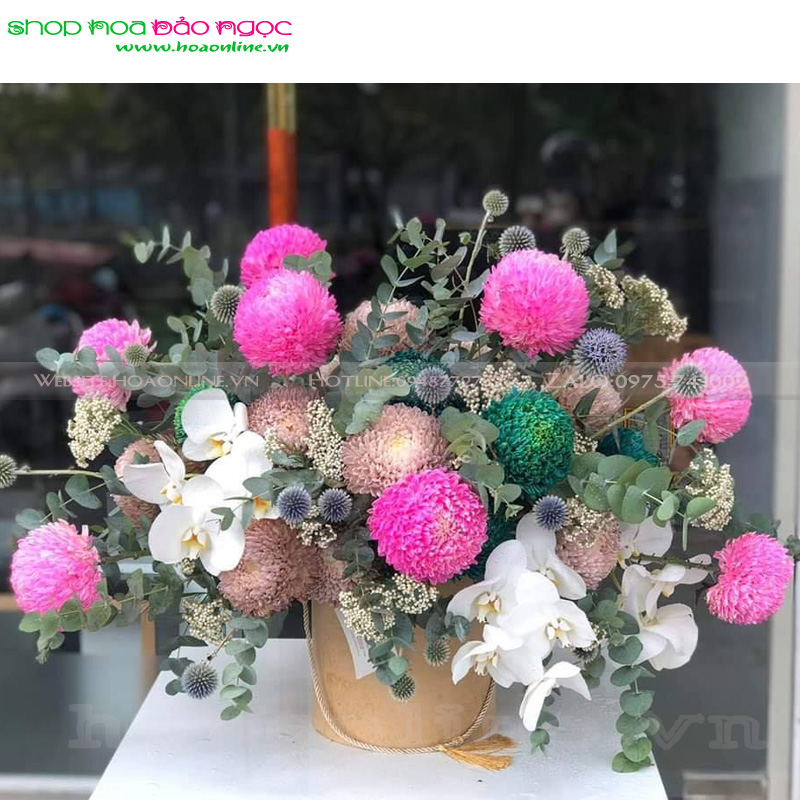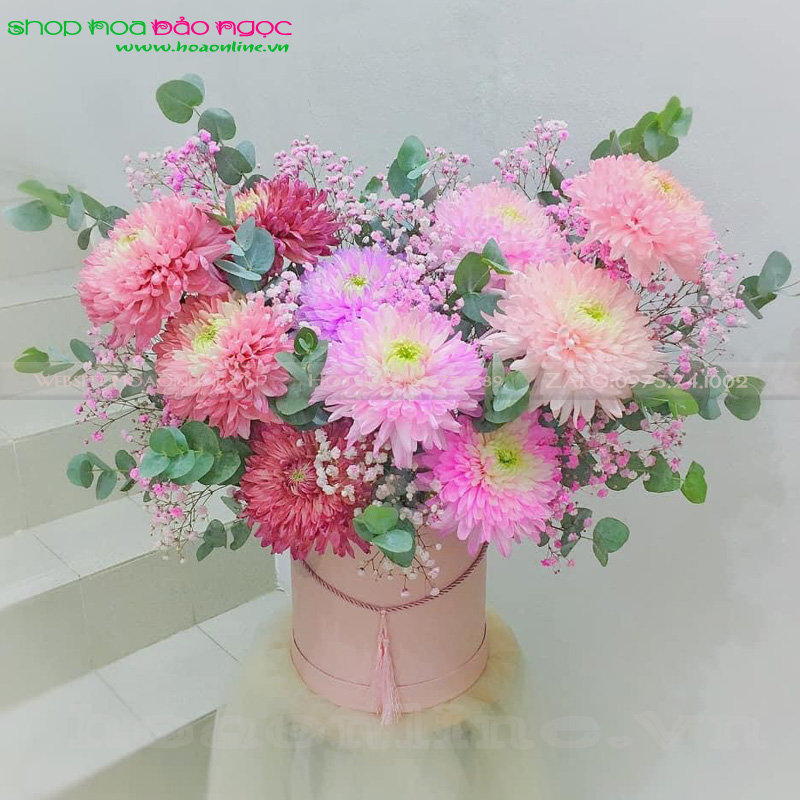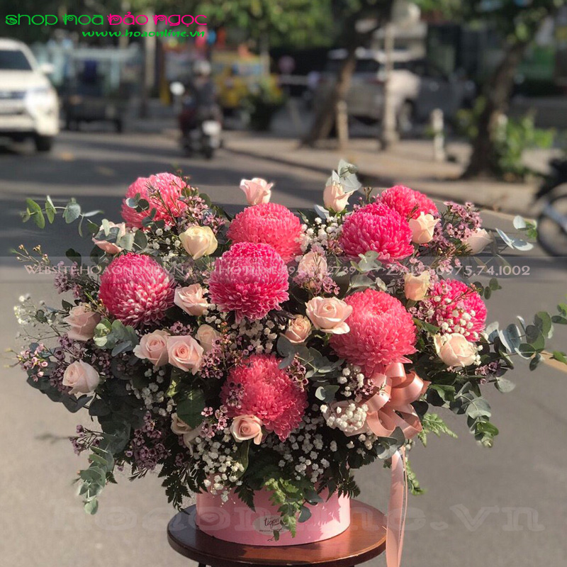 Hộp hoa cúc mẫu đơn BN-G276 được thiết kế và thực hiện bởi Hoa Lan Bảo Ngọc: